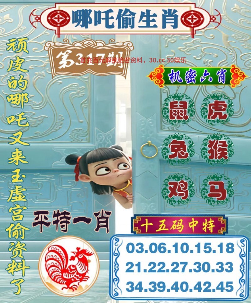 | 317期【解哪吒偷生肖】 解料:逢到一数定三九,本期看好二三肖 机密六肖:鼠虎兔猴鸡马 15码中特:03.06.10.15.18.21.22.27.30.33.34.39.40.42.45 |